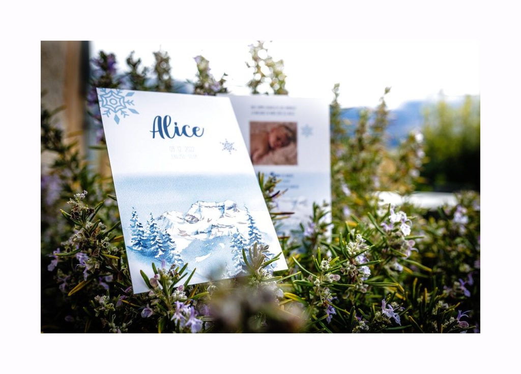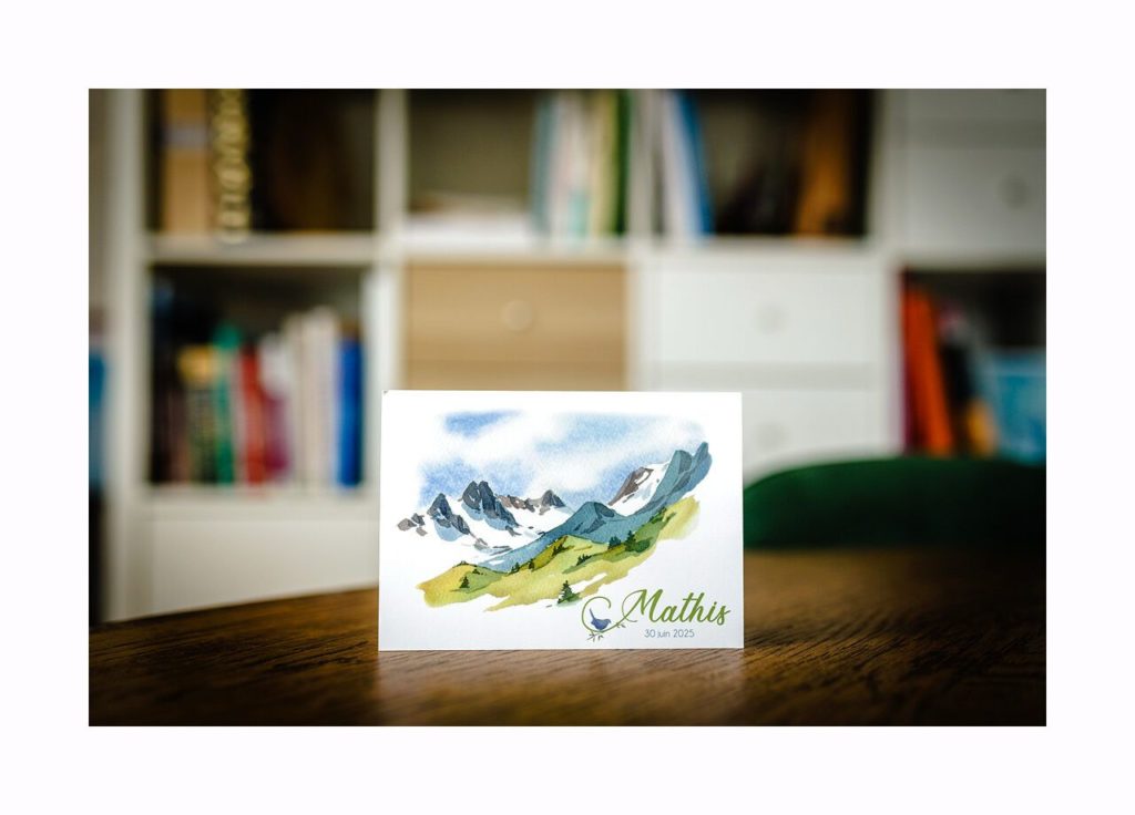 Pour célébrer un moment unique (naissance, mariage, anniversaire…) je vous propose de réaliser votre faire-part (ou invitation, save the date…) à l’aquarelle. De la création de l’illustration à la conception graphique, au choix du papier et à l’impression, tout est compris dans la prestation afin de vous laisser l’esprit tranquille pour préparer votre évènement ou prendre soin de votre tout petit.